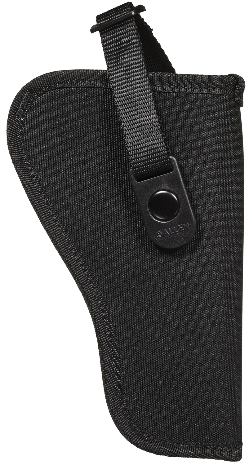 The Allen Company Cortez Handgun Holster provides a lightweight, rugged exterior, designed for right-handed shooters. Snag-proof lining, with a web sight guard, helps you with faster draw speeds while the molded belt loop fits belts up to 2-inches wide. Keep your firearm secure when not in use, ready when you are, with an adjustable strap. This model is compatible with 3 to 4-inch barrel, medium-large frame double action revolvers and other makes/models of similar size.