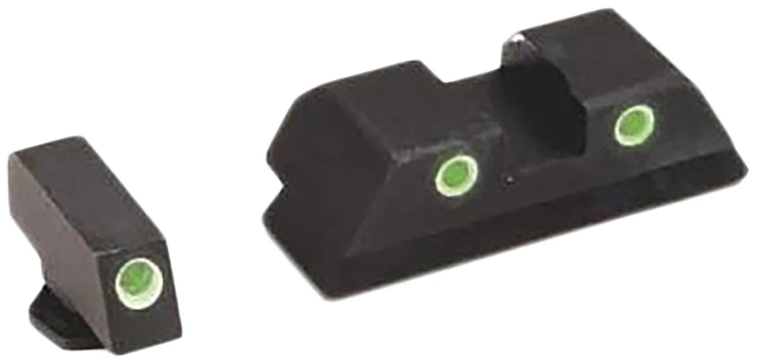 AmeriGlo brings a clear advantage to your shooting experience on and off the range. Easily visible under all lighting conditions, the AmeriGlo Classic Tritium series sight comes with a green tritium lamp/white outline for the front sight and two green tritium lamps/white outlines for the rear sight. The original standard in self luminous night sights, the Classic 3-dot design is the most popular among personal defense, military, and law enforcement. Fits Glock MOS slide.