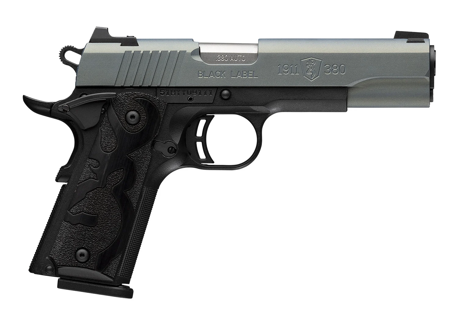 Browning 051992492 1911-380 Black Label Full Size Frame 380 ACP 8+1 4.25″ Matte Stainless Steel Barrel, Northern Lights Cerakote Serrated Steel Slide, Matte Black Polymer Frame w/Beavertail