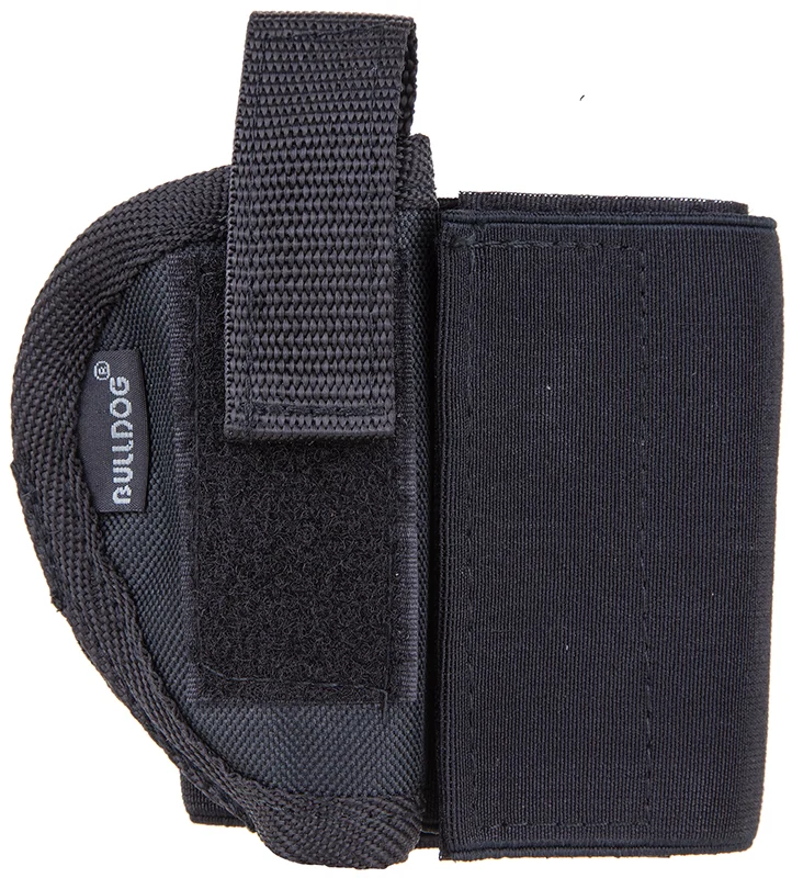 The Bulldog ankle holster is made of sturdy elastic band with a Velcro closure and has an adjustable thumb break.