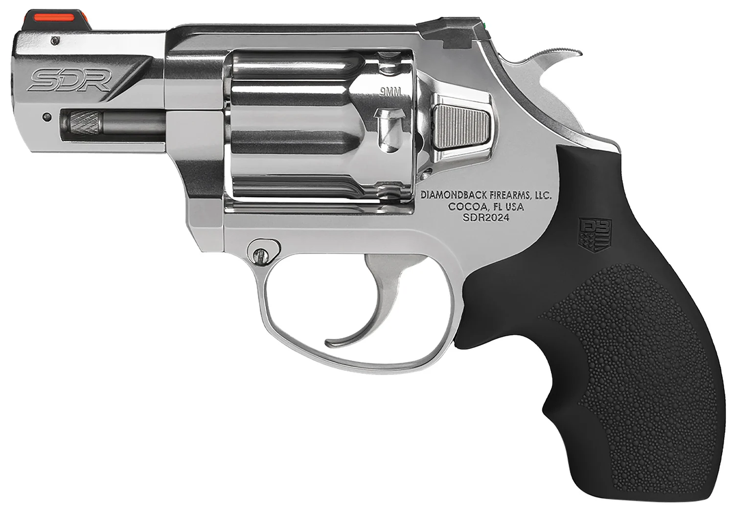 Diamondback DB0700P701 SDR 9mm Luger 6 Shot 3″ Polished Stainless Steel Barrel, Cylinder & Frame, Black Hogue Rubber Grip, Exposed Hammer