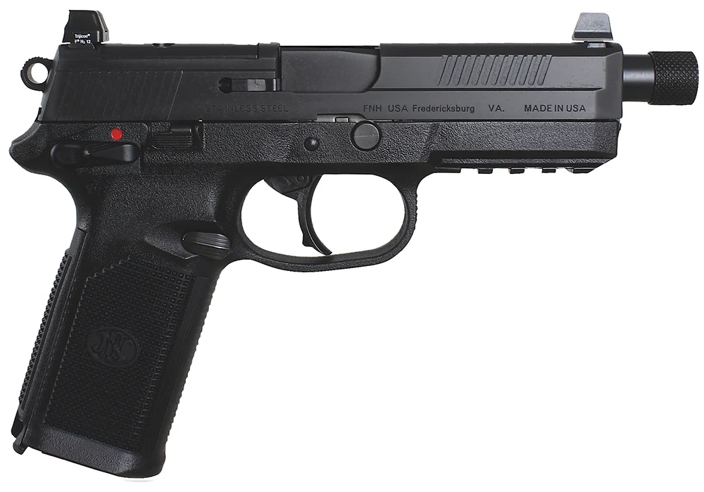 FN 66966 FNX Tactical 45 ACP 15+1 5.30″ Steel Threaded Barrel Black Optic Ready/Serrated Slide Matte Black Polymer Frame w/Picatinny Rail Black Textured w/Interchangeable Backstrap Grips Right Hand