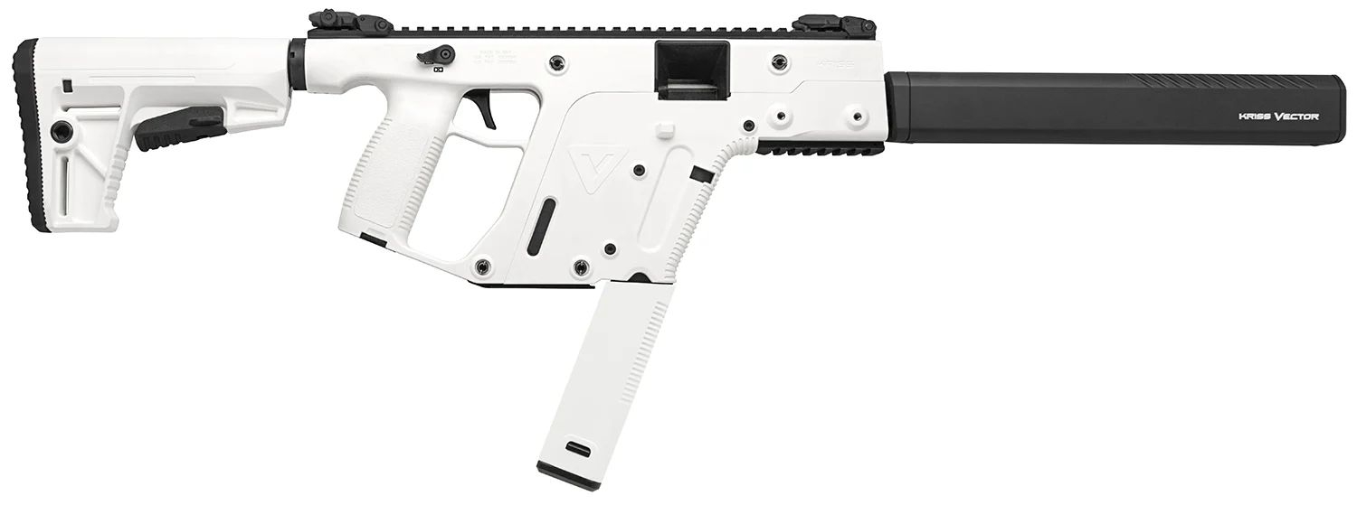 Kriss USA KV45CAP20 Vector CRB Gen2 45 ACP 30+1 16″ Black Nitride Threaded Barrel, Alpine Cerakote Picatinny Rail Aluminum Receiver, Alpine White Synthetic 6 Position Stock Alpine Polymer Grip