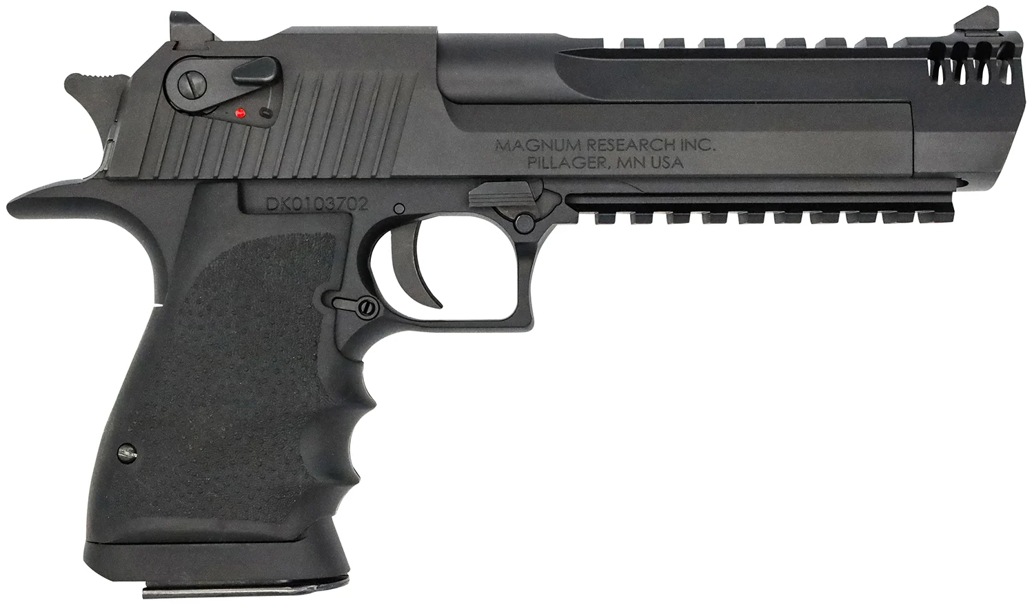 The entire Desert Eagle Mark XIX Component System is based on a single platform. With its gas operation, rotating bolt and all-steel construction, this is the heart of the Desert Eagle. Once you’ve purchased a Mark XIX Desert Eagle Pistol, you can change the barrel length or the caliber in seconds using caliber conversion components. The L6 features a 6″ steel barrel w/integral muzzle brake; aluminum frame w/Picatinny rail and Carbon Steel Slide. Includes one magazine.