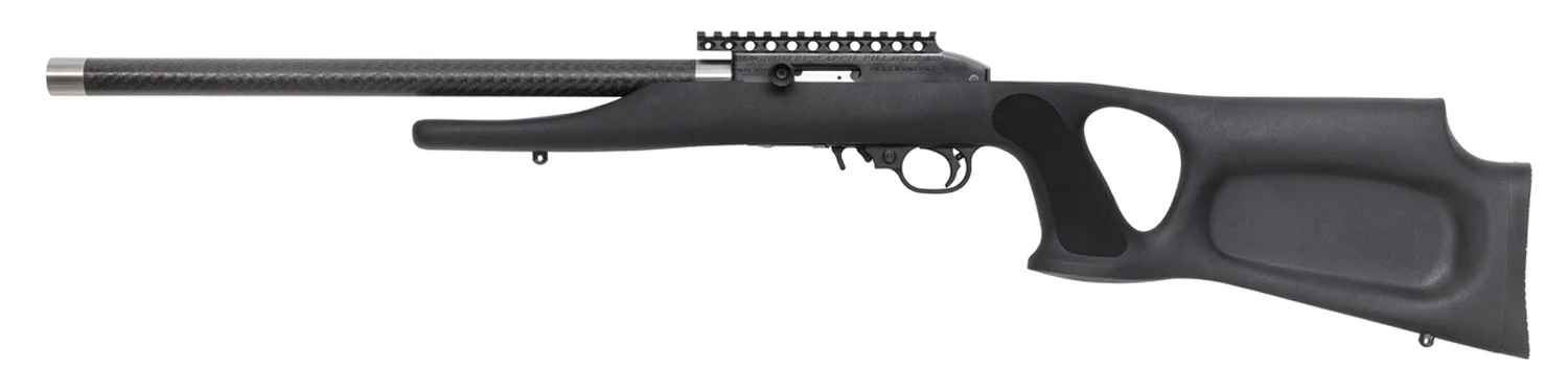 Magnum’s MLR (Magnum Lite Rifle) is designed and entirely manufactured in the United States. At the heart of the rifle is its one-piece, forged 6061-T6 receiver that utilizes an integral Picatinny rail and has a hard coat anodized finish for durability and wear. It is equipped with the patented graphite bull barrel which features uni-directional graphite fibers and is full-floating with an 11 degree muzzle crown for maximum accuracy. This SwitchBolt 22LR model has a 17″ barrel, ambidextrous thumbhole black stock, and comes with one 10-round magazine.