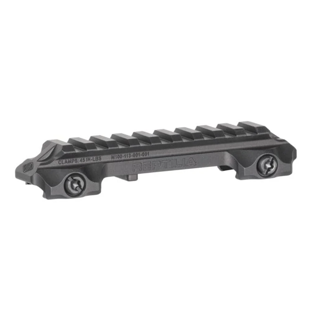 The RMU Mount by Reptilia is a lightweight slim-line solution manufactured at the request of a DoD customer. The RMU Mounts are ideal for lifting a variety of optics with fixed height lower 1/3 co-witness heights such as the EOTech line of holographic optics Vortex Optics AMG UH-1 and Sig Optics ROMEO8T to an elevated height which is more ergonomic when using helmet-borne night vision or those who prefer a more upright shooting stance.