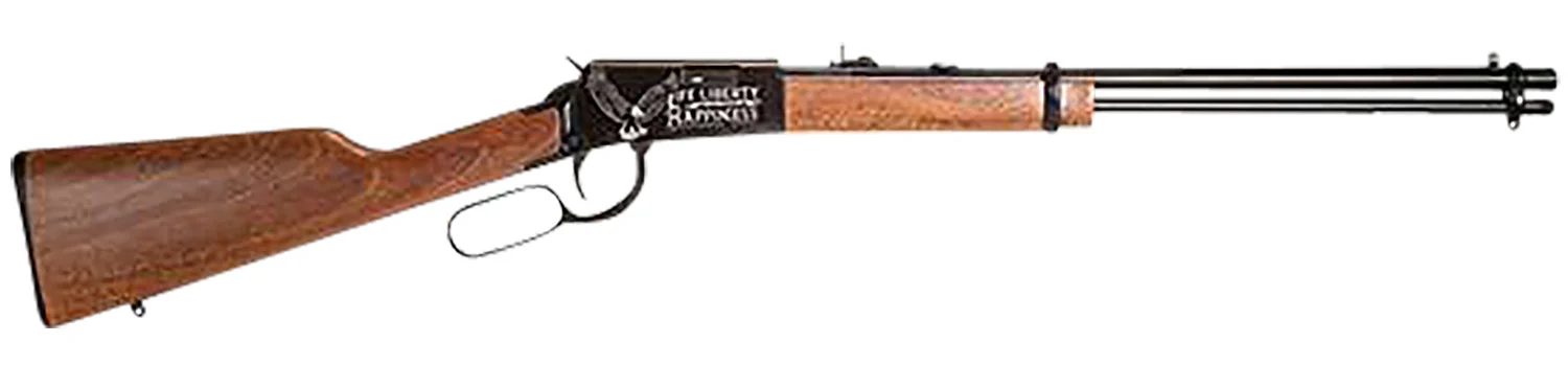 Rossi, MFG# RL22181WD-EN23, UPC: 754908900695, UOM: EA, Rio Bravo, .22 LR, 1776, 18″ Barrel, Buckhorn Sights, Black Engraved 1776 w/Stars Receiver, Wood Stock, 15-rd, BRAZ, BRAZLG12, BRAZLGALL, LG12, LGALL