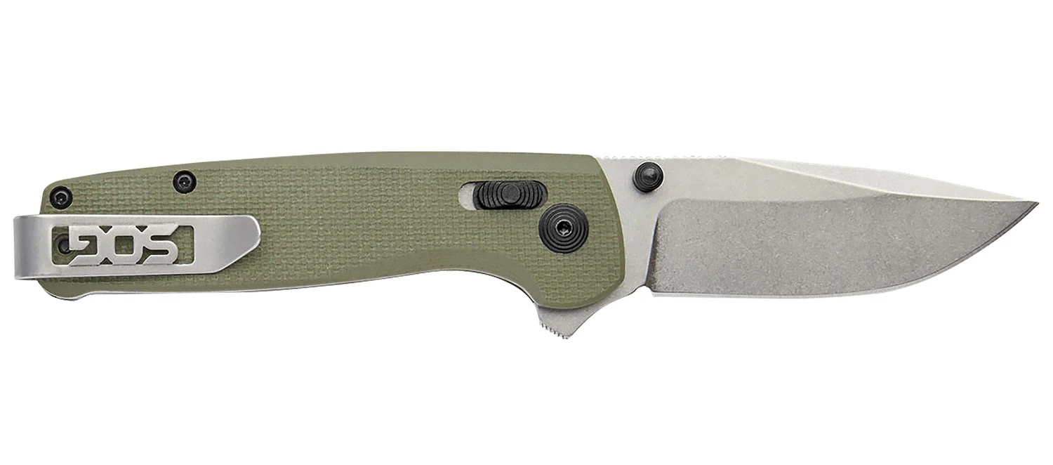 S.O.G SOGTM1022CP Terminus XR 2.95″ Folding Plain Clip Point Stone Washed D2 Steel Blade/Olive Drab Textured G10 Handle
