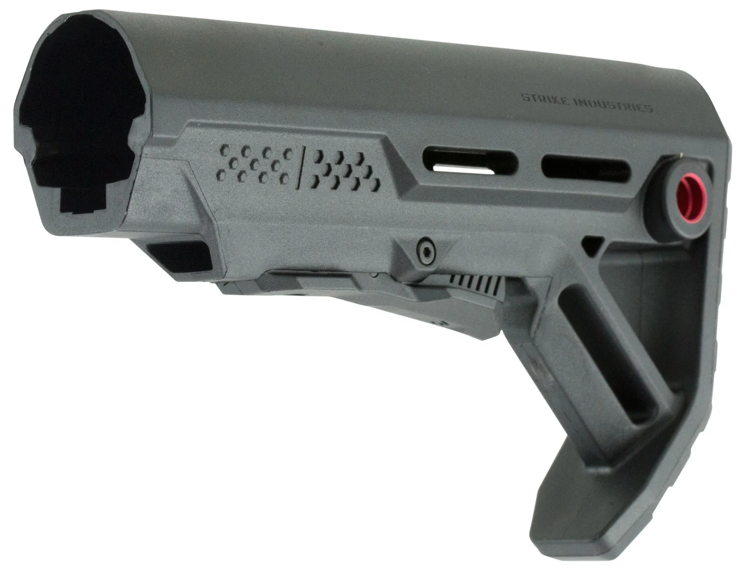 Strike Industries drop-in replacement buttstock for AR15/M16 carbine using mil-spec sized receiver extension tubes. The MOD1 stock integrates features sought by military professionals and firearms enthusiasts around the world.