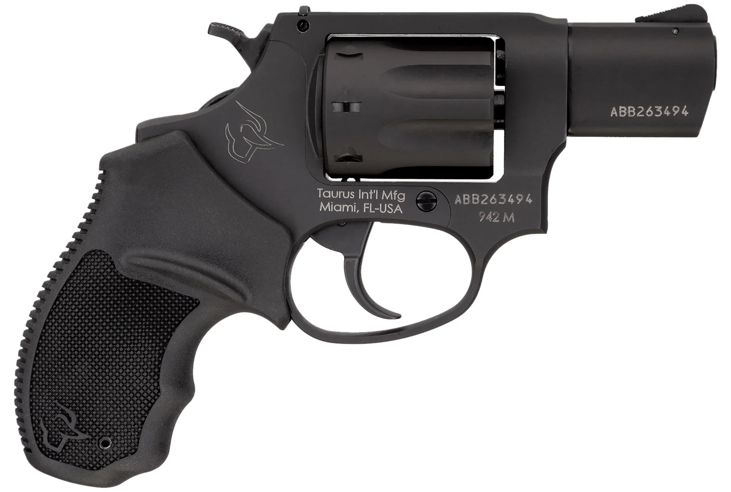 Taurus 2942M021 942 22 WMR 8rd 2″ Barrel, Overall Matte Black Finish Steel & Finger Grooved Black Polymer Grip