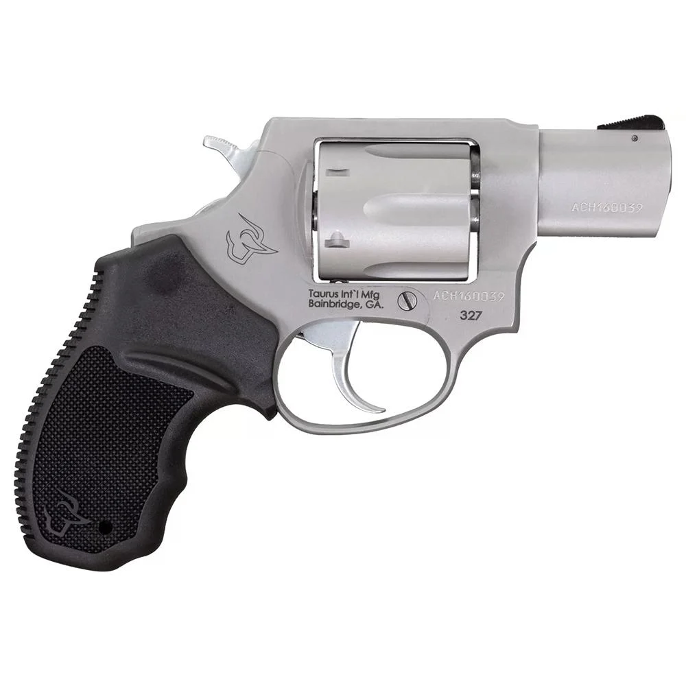 The new Taurus 327 is a double-action/single-action chambered in .327 Federal Magnum (also compatible with .32H&R Magnum and .32 S&W). Available in 2 and 3 inch barrel. The matte black carbon steel or stainless-steel barrel cylinder and frame are backed by a recoil-absorbing rubber grip that is comfortable and provides excellent retention in a compact handgun platform. The Taurus 327’s front serrated ramp sight and no-snag rear sight channel provide quick and clear targets acquisition supported by consistent accuracy.