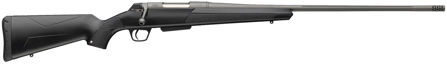 The Winchester XPR Extreme Black Tungsten rifle is a step forward in design and manufacturing, bringing you a high-performance hunting rifle. Tungsten Cerakote finish on the receiver and barrel protects better than traditional bluing or bare stainless. Featuring threaded, drilled and tapped, fluted, button rifled barrel; steel receiver; composite stock; Inflex recoil pad; installed sling swivels; bolt unlock button; recessed target crown and 2-position thumb safety. Includes threaded muzzle brake.